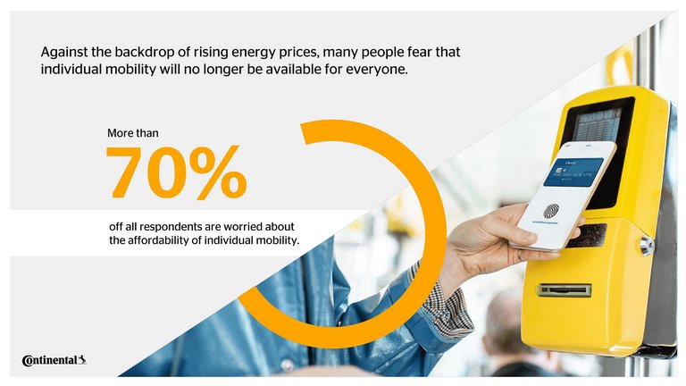 The Continental Mobility Study 2022 covered general mobility needs, attitudes toward sustainability aspects, especially electric mobility, and in-car technological developments. The survey also focused on many people’s concerns about the affordability of personal mobility and on the car as a possible shelter and place of retreat when travelling, particularly in light of the Covid-19 pandemic.