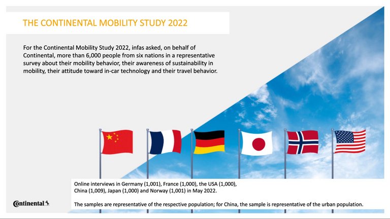 This year, Continental and the market and social research institute infas asked 6,000 people aged 18 and older in Germany, France, Norway, the USA, Japan, and China about their mobility needs both in everyday life and in relation to travel. The survey was carried out in May 2022.
