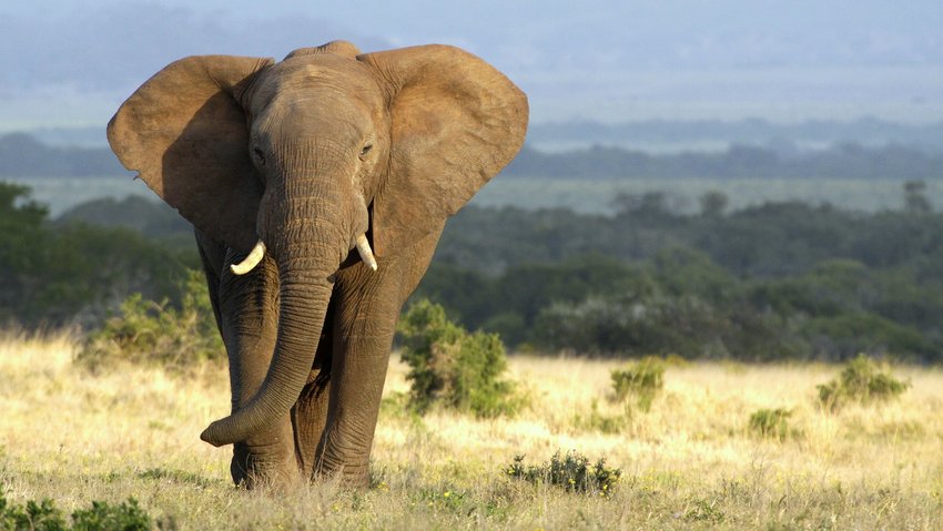 Before sunrise, we climb into an open jeep and set off. We have barely been driving for 10 minutes when we spot by far the largest of the Big Five: the elephant. About 15 of them are at the riverbank, drinking and spraying themselves with water.