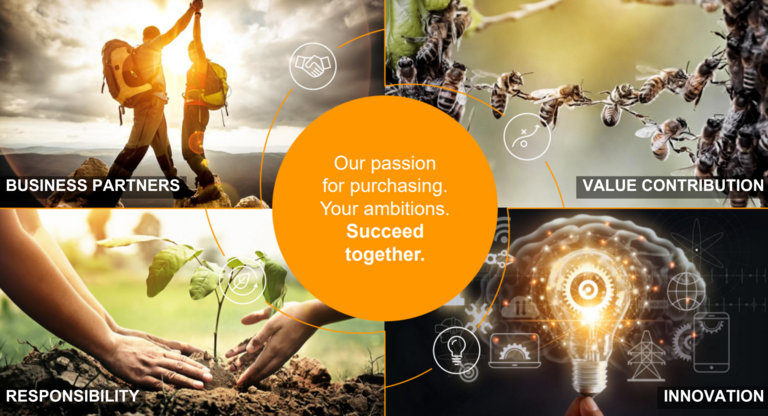 Group Purchasing is divided into Production Material and Non-Production Material, with teams working in different countries worldwide.