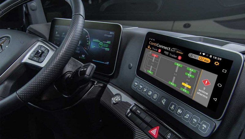 Integrating the ContiConnect Driver App into the Mercedes-Benz Truck App Portal platform provides the customer with another tool for keeping their fleet intelligently connected. The fleet manager can simply select the ContiConnect Driver App from the Mercedes-Benz Trucks portal and then use the tire monitoring system via the existing in-cab display without the need for any additional hardware. The Mercedes-Benz Truck App Portal is a digital marketplace that allows trucks to be individually equipped with comfort- and efficiency-enhancing apps. The result is improved, intelligent connectivity between vehicle, trailer and infrastructure using a wide range of different solutions, plus the ability to capitalize on the potential for improvement with the help of apps for a trucker’s daily routine.