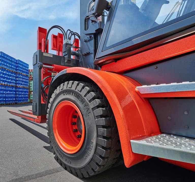 In addition to passenger car, motorcycle and bicycle tires, the Continental tire plant in Korbach also produces super-elastic solid tires for challenging applications in material handling and intralogistics, such as the SC20+ or CS20+ tires. With their low rolling resistance, they help to reduce energy consumption in intralogistics already today and increase the range of forklifts, airport vehicles, heavy-duty transport vehicles, side forklifts, platform trucks and other industrial vehicles. Thanks to modern rubber compounds, Continental's material handling tires offer a combination of stability, load capacity and a long service life – properties that are of central importance in intralogistics.