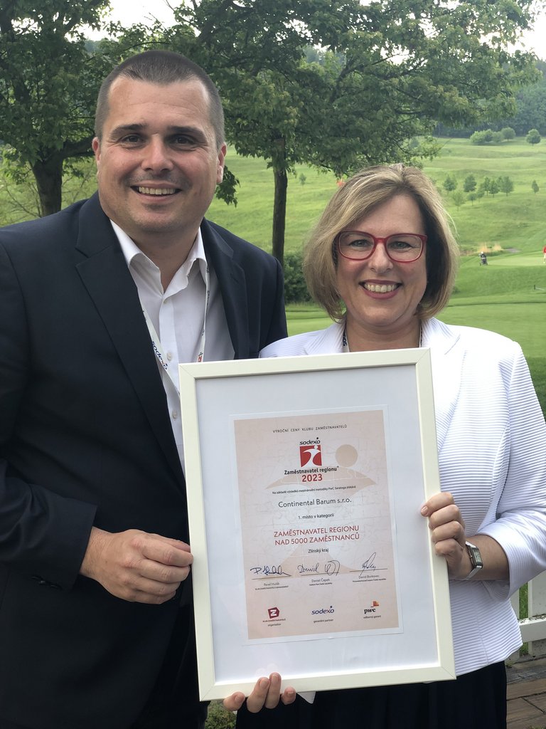 Do elitní skupiny nejvýznamnějších zaměstnavatelů se dostala otrokovická společnost Continental Barum i v rámci celé České republiky. Letos se umístila celorepublikově na třetím místě mezi firmami nad 5000 zaměstnanců. Zmínit můžeme, že první příčku obsadila firma ČEZ a druhé místo získala Škoda Auto. K slavnostnímu předání ocenění došlo v pondělí ve večerních hodinách 12. června v Praze a za společnost Continental Barum cenu převzal právě personální ředitel Peter Šimo.