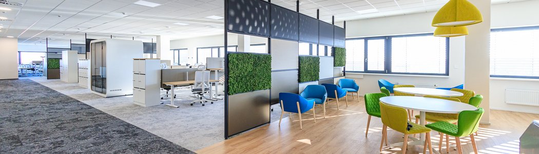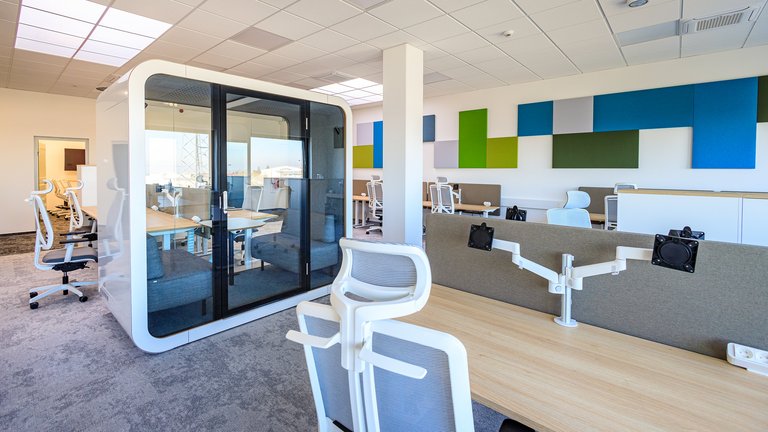 S otevřením multifukční budovy se pojí také digitální inovace, na které se zaměstnanci budou muset postupně adaptovat. Nově se učí využívat možnosti aplikace, díky které si jednoduše zarezervují pracovní stůl, parkovací místo či v budoucnu nahlásí dovolenou. Akustickou vychytávkou budovy jsou pro změnu dělící zvukové stěny a speciální akustické atesty. Nechybí ani plně funkční zvukové odhlučnění hovorů či drobných jednání v podobě tzv. telefonních „budek“, polohovatelné stoly, osobní uzamykatelné boxy a prostorné společenské zázemí, tzv. komunitní centra.