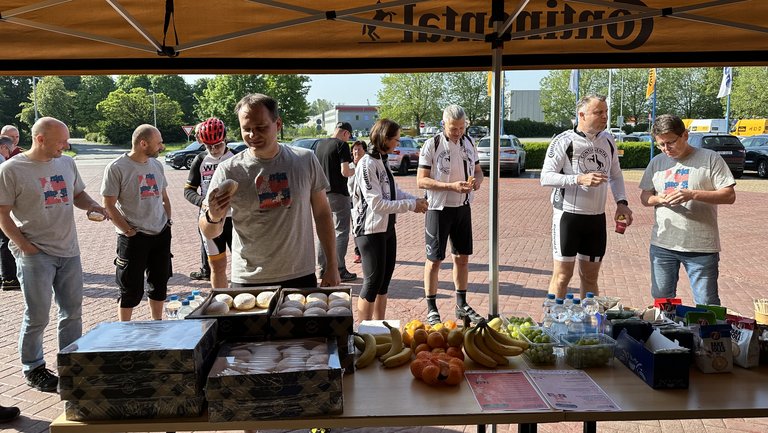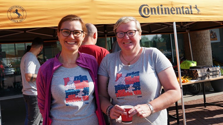 Na závěr květnové bezemisní výzvy se i ve společnosti Continental Barum dočkali registrovaní zaměstnanci snídaně. U dvou nejfrekventovanějších koláren byly ve stanech k dispozici vody a káva k pití a dále koblihy, cereálie, banány, mandarinky a hrozny k zakousnutí. Na kolech přijeli i všichni tři jednatelé společnosti a další zástupci managementu firmy.
