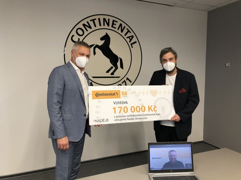 „Ještě před spuštěním provozu vyhlídkového Continental kola jsme avizovali, že vybrané finanční prostředky budou předány Naději Otrokovice a interně jsme měli mnoho tipů, jak vysoká tato částka může být. Výsledek byl pro všechny velkým překvapením a jsme velice rádi, že výtěžek předčil naše očekávání,“ zmínil jednatel společnosti Libor Láznička při setkání s Pavlem Polákem, ředitelem otrokovické pobočky Naděje.