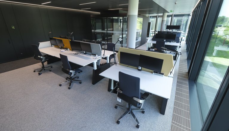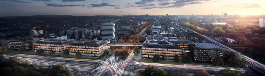 Die Zentrale erstreckt sich über zwei Grundstücke, die durch eine verglaste Brücke über die zehnspurige Hans-Böckler-Allee miteinander verbunden sind – ein nachhaltiges und innovatives Gebäude, das unter anderem ein Betriebsrestaurant, zwei Cafeterien sowie ein Gesundheitszentrum für die Beschäftigten bereithält. Als Verwaltungsstandort sind hier vor allem kaufmännische und administrative Funktionen ansässig.