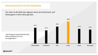 Das Auto gewinnt durch die Pandemie weiter an Bedeutung und ist für viele Menschen fester Bestandteil des eigenen Reise- und Freizeitverhaltens. Das ist eines der Kernergebnisse der repräsentativen Mobilitätsstudie 2022, die das renommierte Marktforschungsunternehmen infas im Auftrag von Continental weltweit durchgeführt hat. Demnach definiert eine Mehrheit der Menschen in Deutschland das Auto als wesentlichen Teil ihrer Mobilität und ihres individuellen Lebensraums. 54 Prozent der im Rahmen der Studie Befragten sehen das eigene Auto als persönlichen Rückzugsort an. Über die Hälfte (53 Prozent) nutzt für Urlaubsreisen ein Auto beziehungsweise ein Camping- oder Wohnmobil...