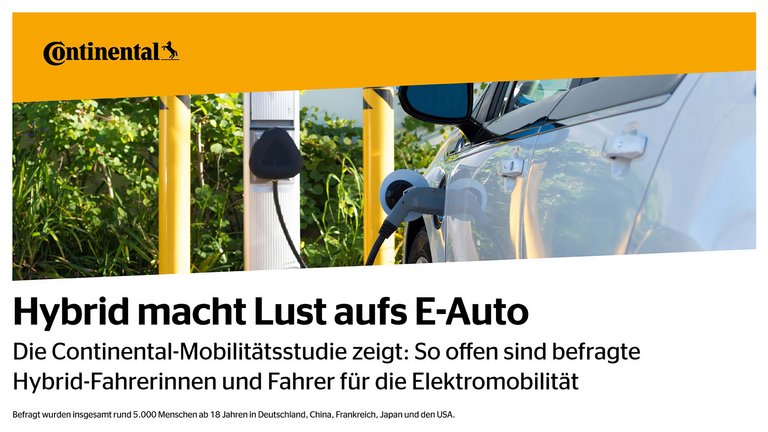 In Frankreich und Japan ist die Akzeptanz rein elektrisch betriebener Fahrzeuge dagegen geringer. Dort sind gegenwärtig ein Drittel aller Befragten – also Fahrerinnen und Fahrer aller Antriebsarten – geneigt, sich als nächstes ein Elektroauto zu kaufen. Doch auch hier zeigt sich: Diejenigen, die sich das am ehesten vorstellen können, fahren heute ein Hybrid-Fahrzeug (Frankreich: 52 Prozent, Japan: 41 Prozent). Die Ergebnisse der Continental-Mobilitätsstudie 2024 lassen daher darauf schließen, dass durchaus eine Chance besteht, dass Hybrid-Autos verstärkt eine Brücke zur E-Mobilität schlagen und ihr neuen Schub verleihen.
