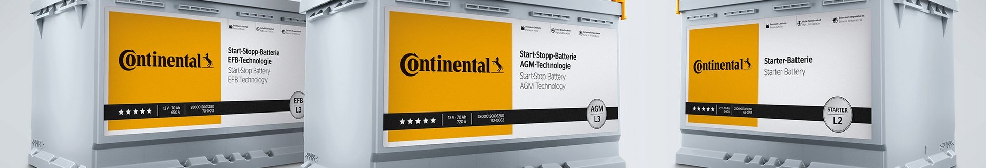 Für die Start-Stopp-Technologie bietet Continental sechs Batterien mit EFB-Technologie an, die speziell für Fahrzeuge mit Start-Stopp-System der Einstiegsklasse entwickelt wurde. Die noch leistungsfähigere, innovative AGM-Technologie kommt in Start-Stopp-Fahrzeugen mit Rückgewinnung der Bremsenergie zum Einsatz. Hier hat das Technologieunternehmen insgesamt drei Typen im Programm. In unabhängigen technischen Vergleichen gingen die Produkte als Testsieger hervor: „Sowohl unsere EFB- als auch die AGM-Batterien erreichten bei der Kapazitätsmessung von Zyklenfestigkeit, Kaltstartprüfung und Tiefentladung Bestwerte im Wettbewerbsvergleich“, sagt Richard Peters, zuständiger Produktmanager bei Continental.