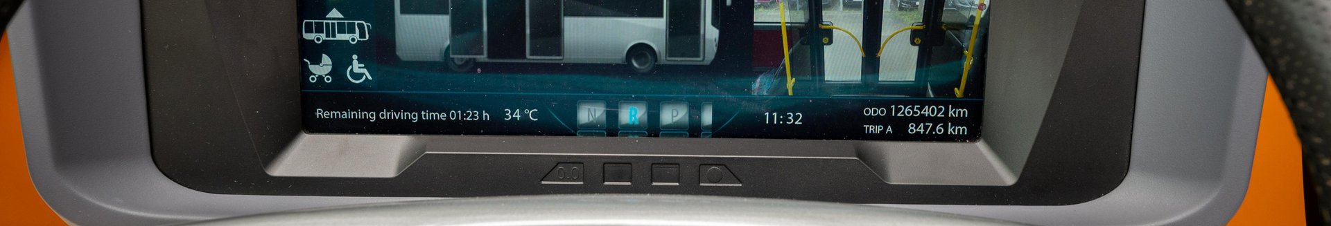 Wo beim Fahrbetrieb die Geschwindigkeit, der Ladestand oder die Navigation angezeigt wird, sind beim Haltestellenbetrieb die Türkameras und andere dann relevante Informationen zu sehen. Beim Rückwärtsfahren oder für Rundumkamera-Systeme kann das Display als Monitor genutzt werden und macht einen Extra-Bildschirm überflüssig. Warnleuchten erscheinen nur dann auf dem Display, wenn es Störmeldungen gibt. Zusätzlich können Pop-up-Meldungen eingeblendet werden, um den Fahrer in außergewöhnlichen Situationen zu warnen. Wie von bisherigen Modellen des Fahrerarbeitsplatzes gewohnt, lässt sich das System komplett in Höhe und Neigung verstellen. Das bedeutet für den Busfahrer ergonomische Arbeitsbedingungen. Ein Mehrwert, der sich auch bei der Suche nach neuen Fahrern positiv auswirken dürfte.