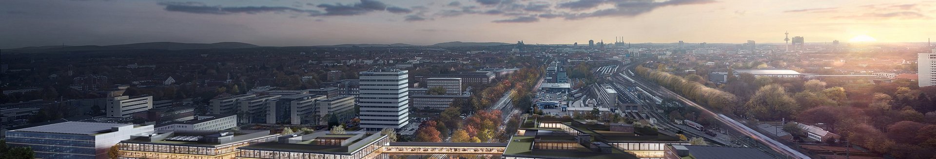 Nach der erfolgreichen Brückenkonstruktion befindet sich der gesamte Rohbau kurz vor der Fertigstellung. Bereits zum Jahresende soll das Richtfest gefeiert werden. In zwei Jahren feiert Continental 150-jähriges Jubiläum – dann soll auch die Continental-Unternehmenszentrale am Pferdeturm bezogen werden. Der Neubau wird nach den Plänen des Architekturbüros Henn aus München für 1.250 Beschäftigte errichtet. Eine spätere Erweiterung auf 1.600 Arbeitsplätze ist möglich. Der Unternehmensstandort wird aus mehreren Gebäuden bestehen, die sich auf zwei Campusflächen nördlich und südlich der Hans-Böckler-Allee nahe des Pferdeturms verteilen. Im Fokus der neuen Unternehmenszentrale stehen neben der modernen Arbeitswelt auch eine erholsame Umgebung für den Mitarbeiter: Dazu zählen unter anderem parkähnliche Außenanlagen, ein Gesundheitszentrum sowie eine unternehmenseigene Kindertagesstätte. Stellplätze für Pkw und Fahrräder sind in zwei Parkhäusern in ausreichender Zahl vorhanden.