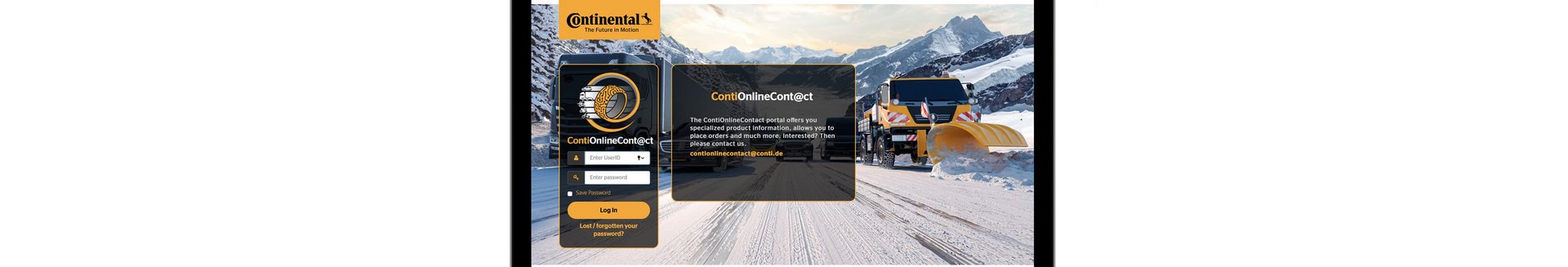 Weitere Informationen zur Registrierung für ContiOnlineContact finden Sie unter: https://www.continental-tires.com/specialty/company/dealer-login