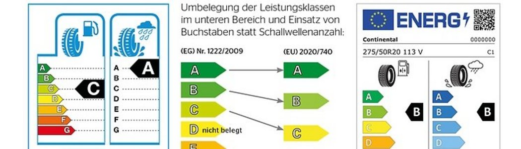 Beim neuen Label bleiben die Klassen A bis C unverändert. Bei C1- und C2-Reifen, also für Pkw und Leicht-Lkw, wird die bisher für Rollwiderstand und Nasshaftung nicht vergebene Klasse D nun mit den Werten aus der alten Klasse E gefüllt, die ihrerseits die Werte der alten Klassen F und G übernimmt. Damit wird das Label übersichtlicher und leichter zu interpretieren.