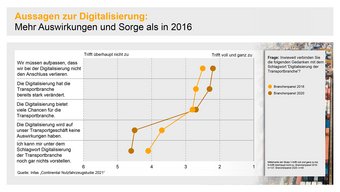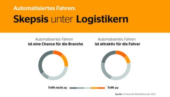 Schwalbach, Juni 2021. Unter deutschen Transportunternehmen wächst die Sorge, bei der Digitalisierung den Anschluss zu verlieren. Das ist ein zentrales Ergebnis der Studie „Der vernetzte Truck“, die das renommierte Sozialforschungsinstitut infas im Auftrag des Technologieunternehmens Continental durchgeführt hat. Mit der Studie nimmt Continental nach 2016 zum zweiten Mal die Trends und Entwicklungen der Transportbranche in den Blick. Befragt wurden deutsche Spediteure, Logistiker und Transportunternehmen zu Themen wie Digitalisierung, Automatisierung, Fahrzeugtechnologien sowie zu den Rahmenbedingungen der Branche. Weitere wichtige Ergebnisse: Der Umweltschutz gewinnt in der Transportbranche deutlich an Bedeutung. Und: Die befragten Logistiker schätzen neue Akteure im Transportgewerbe als weitere zukünftige Herausforderung ein. Eine Übersicht über alle Ergebnisse findet sich auf der Continental-Website (PDF, 1,1 MB) - pdf (549KB).