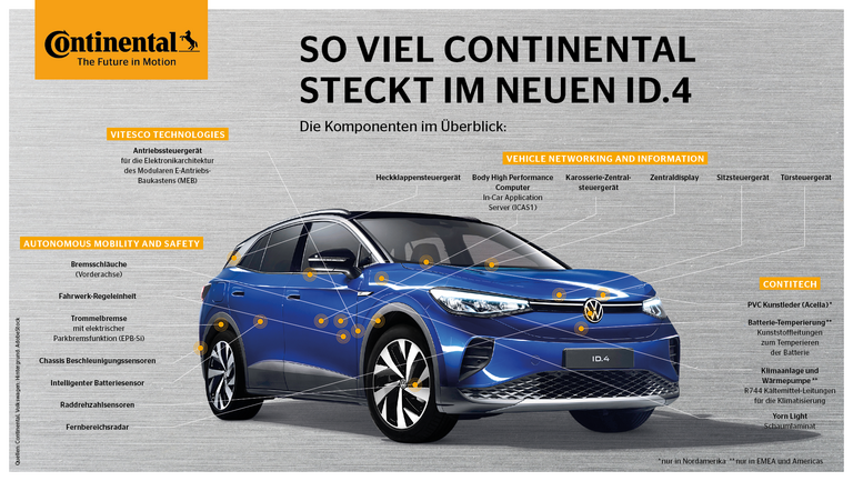 - In nahezu allen Teilen des neuen elektrischen „Weltautos“ ID.4 von Volkswagen steckt Continental-Technologie