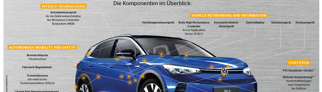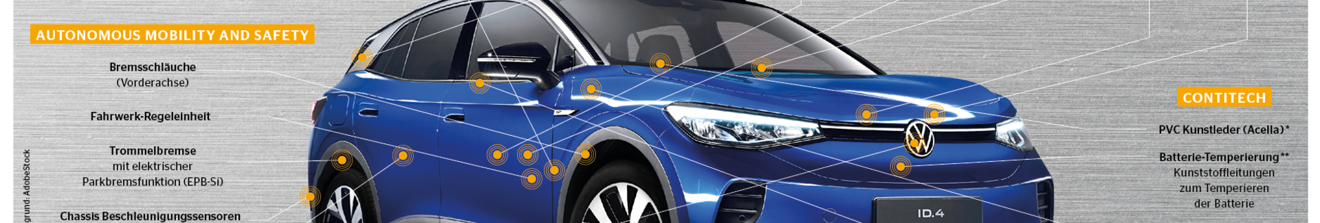 - In nahezu allen Teilen des neuen elektrischen „Weltautos“ ID.4 von Volkswagen steckt Continental-Technologie