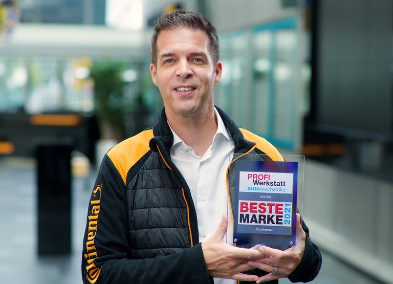 Hannover, 15. September 2021. Einen verlässlichen Partner an seiner Seite zu haben, das schätzen Menschen besonders, wenn es um Sicherheit geht. Die Leserinnen und Leser des Münchner Fachmagazins „PROFI Werkstatt“ haben Continental zum dritten Mal in Folge zur besten Werkstattmarke gewählt. Die Nutzfahrzeugreifensparte des Premiumherstellers konnte in der Kategorie Reifen die meisten Stimmen auf sich vereinen. „Ich freue mich sehr, auch im Namen aller Reifenkollegen von Continental, diesen tollen Preis entgegen nehmen zu dürfen“, sagt Marc Schmitt, Leiter Markenkommunikation Reifen Ersatzgeschäft Deutschland. Die Kunden setzen auf Continental als verlässlichen Partner, haben dem Unternehmen wieder ihr Vertrauen geschenkt und es erneut auf den ersten Platz gewählt. „Dieser Preis ist für uns großer Ansporn voller Leidenschaft und Engagement täglich unser Bestes zu geben, um auch in Zukunft der Partner an der Seite unserer Kunden sein zu können“, so Schmitt. Das Dankeschön überbrachte er mit einem Video an die Leserinnen und Leser.