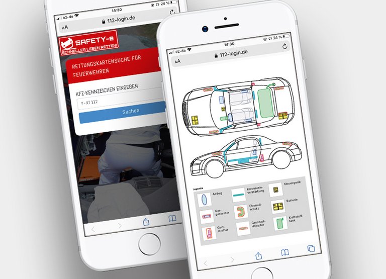 SAFETY-e. Nachdem der Halter sein Fahrzeug auf der Website registriert hat, ist dort die entsprechende digitale Rettungskarte per Eingabe des Kennzeichens jederzeit abrufbar. Ein Aufkleber an der Windschutzscheibe macht Rettungskräfte und Ersthelfer auf die Teilnahme an der Initiative aufmerksam. Geben Personen am Unfallort beim Absetzen des Notrufs bereits das Kennzeichen an, liegen den Rettungskräften die Informationen sogar bereits vor dem Eintreffen am Unfallort auf dem Tablet oder Smartphone vor. Das ermöglicht eine bessere Vorbereitung auf den Einsatz.