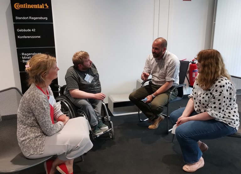 Damit die Menschen mit Behinderung optimal auf die Jobmesse, insbesondere auf das sogenannten Job-Speed-Dating, eines der Kernangebote, vorbereitet werden, fand heute ein Coaching-Tag bei Continental in Regensburg statt. Rund 25 Bewerberinnen und Bewerber lernten im Laufe des Tages, wie man sich im Arbeitsleben zurechtfindet und Bewerbungsgespräche führt. Durchgeführt wurde die Schulung durch das ISL Berlin.