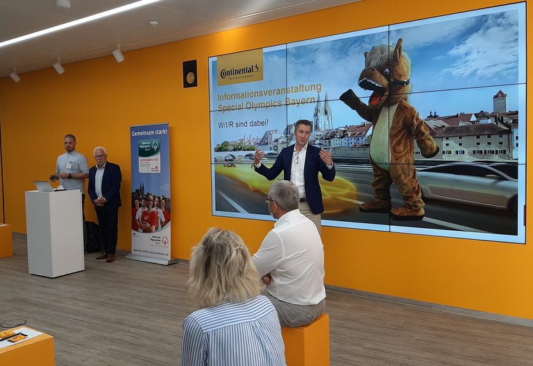 Regensburg, 17. Mai 2022. Von 19. bis 23. Juli 2022 finden die Special Olympics Landesspiele Bayern in Regensburg statt. Die Vorbereitungen laufen bereits seit Monaten auf Hochtouren. Heute wurde mit der Durchführung der ersten Helferschulung ein weiterer Meilenstein erreicht. Ausgerichtet wurde die Schulung für die Mitarbeiterinnen und Mitarbeiter von Continental Regensburg. Denn, der Technologiekonzern, der an seinem Standort knapp 5.000 Mitarbeiterinnen und Mitarbeiter beschäftigt, ist gemeinsam mit der Sparkasse Regensburg Top Sponsor des Events und bei der Veranstaltung im Juli mit der Belegschaft vertreten.