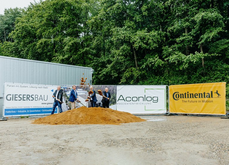 Aconlog wird einen 3.100 qm umfassenden Neubau errichten und ihn – wie bei allen Immobilienprojekten seit der Gründung des Unternehmens – mit einer Photovoltaikanlage ausrüsten. Vom erzeugten Solarstrom wird zukünftig auch Continental bei der Allgemeinstromversorgung profitieren. „In den kommenden Wochen werden rund 7.000 Kubikmeter Erde abgefahren, um das Gelände vorzubereiten. Ab Juli werden die Fundamentarbeiten beginnen und Anfang September werden die ersten Hochbauarbeiten zu sehen sein“, erklärte Bauherr Oliver Blüher, Geschäftsführender Gesellschafter der Kölner Aconlog Projektentwicklung GmbH, beim ersten Spatenstich. Mit der Ausführung wurde das familiengeführte mittelständische Bauunternehmen Giesers Stahlbau GmbH aus Bocholt beauftragt.