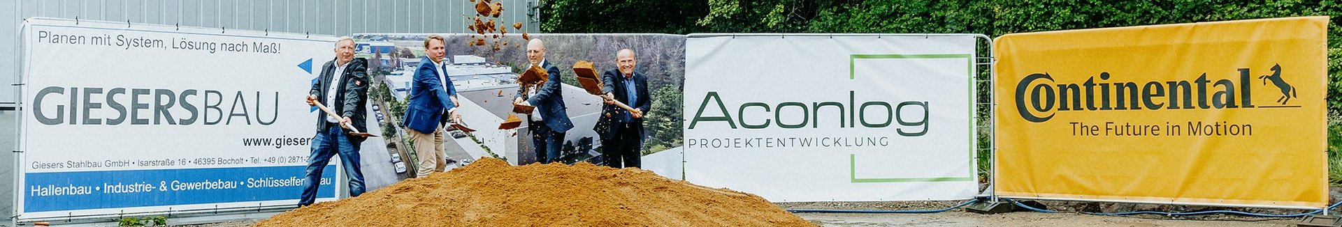 Aconlog wird einen 3.100 qm umfassenden Neubau errichten und ihn – wie bei allen Immobilienprojekten seit der Gründung des Unternehmens – mit einer Photovoltaikanlage ausrüsten. Vom erzeugten Solarstrom wird zukünftig auch Continental bei der Allgemeinstromversorgung profitieren. „In den kommenden Wochen werden rund 7.000 Kubikmeter Erde abgefahren, um das Gelände vorzubereiten. Ab Juli werden die Fundamentarbeiten beginnen und Anfang September werden die ersten Hochbauarbeiten zu sehen sein“, erklärte Bauherr Oliver Blüher, Geschäftsführender Gesellschafter der Kölner Aconlog Projektentwicklung GmbH, beim ersten Spatenstich. Mit der Ausführung wurde das familiengeführte mittelständische Bauunternehmen Giesers Stahlbau GmbH aus Bocholt beauftragt.