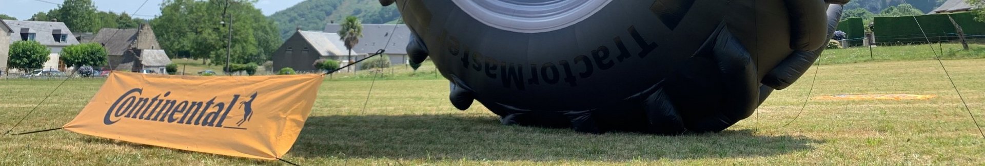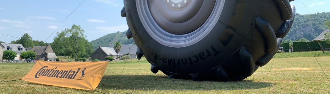 Continental wirbt mit großem aufblasbaren Landwirtschaftsreifen entlang der Tour de France 2022