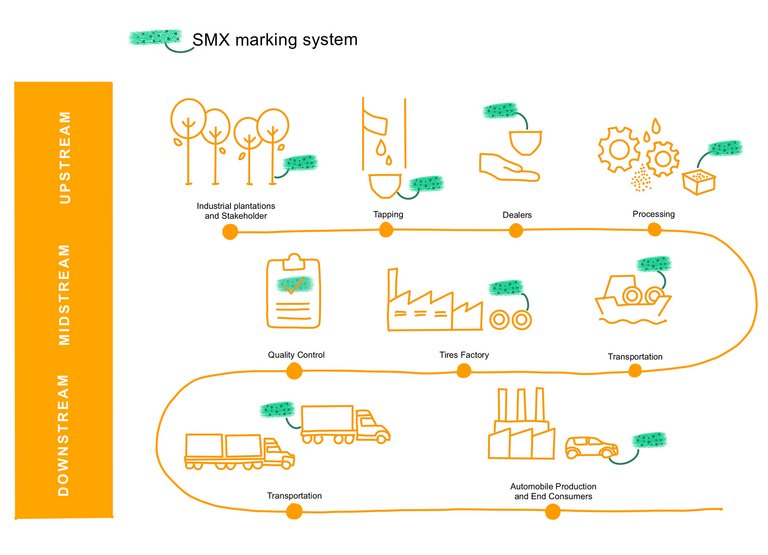 Für den Feldversuch wurde Naturkautschuk eines gemeinsamen Projektes von Continental und der Deutschen Gesellschaft für Internationale Zusammenarbeit (GIZ) aus West Kalimantan, Indonesien, eingesetzt und mit den Markern versehen. Das Projekt setzt auf Bildung und Digitalisierung als Schlüssel zum Aufbau nachhaltiger Lieferketten für Naturkautschuk. So wurden die Kleinbäuerinnen und -bauern vor Ort darin geschult, wie Marker-Substanzen funktionieren und in welcher Konzentration sie in den Latex-Saft eingebracht werden müssen.