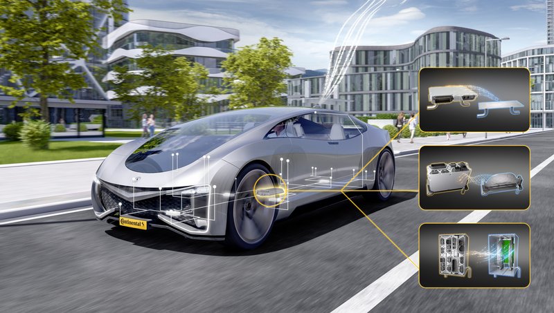 Die hohe Rechenleistung der HPCs kann je nach Anwendungsfall eine thermische Verlustleistung im Bereich von 1KW erreichen. Diese muss zuverlässig mittels Flüssigkeitskühlung abgeführt werden, damit die internen Bauteile im sicheren Temperaturbereich bleiben. Bestehende Lösungen können bis dato nicht ohne Unterbrechung des Kühlwasserkreislaufs implementiert werden und erfordern die Aufbringung einer Wärmeleitpaste zwischen dem Kühler und des Steuergeräts, was einen Austausch des Steuergeräts kompliziert und umständlich macht. Continental führt ein neuartiges Kühlkonzept ein, das einen Austausch deutlich vereinfacht. Dieses System besteht aus einem neuartigen Kühler in Form von flexiblen Kühlpads, die sich durch Flüssigkeitsdruck ganz von allein an die zu kühlenden HPC-Module anschmiegen. Ein unerwünschter Luftspalt entsteht so gar nicht erst. Auf diese Weise gestaltet sich ein Austausch von HPC-Modulen sehr einfach. Eventuelle Reparaturen oder Upgrades werden damit deutlich kostengünstiger.