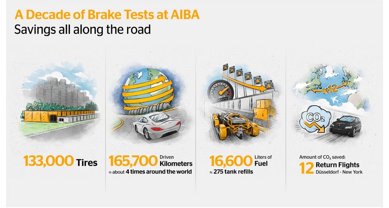 Die innovative Reifenbremstestanlage unterstützt auch die Nachhaltigkeitsstrategie von Continental. In den vergangenen zwölf Jahren wurden dank AIBA und des elektromagnetischen Linearantriebs wertvolle Ressourcen eingespart. Rund 166.000 Kilometer, die auf normalen Teststrecken für An- und Abfahrten benötigt werden, konnten vermieden werden. Das sparte 16.600 Liter Kraftstoff sowie knapp 40 Tonnen CO2 ein. Der Strom für die AIBA-Bremstestanlage stammt seit Ende 2020 vollständig aus erneuerbaren Energien. Seitdem nutzt Continental diesen an all ihren Produktions- und Teststandorten. Hierfür bezieht das Unternehmen Herkunftsnachweise in Übereinstimmung mit den Kriterien der weltweiten RE100-Initiative.