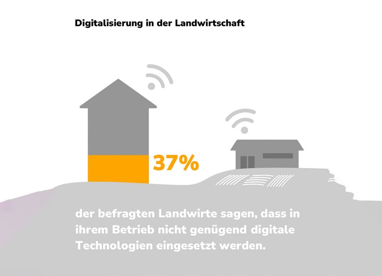 - Digitaler Wandel unterschiedlich weit fortgeschritten: Mehr als 40 Prozent nutzen bereits Apps oder GPS-gesteuerte Landmaschinen, gleichzeitig nutzt jeder Fünfte noch gar keine digitalen Technologien