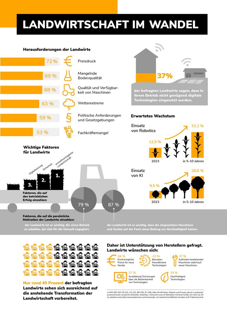 - Befragung in fünf Ländern auf vier Kontinenten: Landwirtinnen und Landwirte sind unzufrieden mit Digitalisierungsgrad des eigenen Betriebs