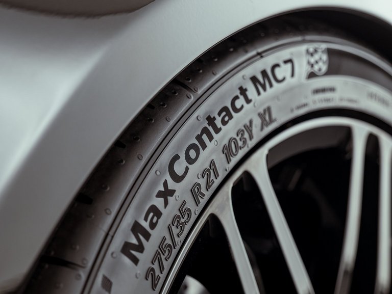 Der neue MaxContact MC7 von Continental verbindet durch die auf Leistung ausgelegte Sport+-Technologie maximale Kontrolle mit dynamischer Lenkpräzision. Dank der einzigartigen Makroblock-Struktur für Stabilität in Kurven und dem ReFlex-Design zeichnet sich der Hochleistungsreifen durch hervorragende Anpassungsfähigkeit und festen Grip auf der Straße aus. Durch eine breite Aufstandsfläche wird die Kraft erfolgreich auf andere Teile des Reifens verteilt. Dies ermöglicht selbst bei sehr hohen Geschwindigkeiten – das Brabus-Modell 750 Bodo Buschmann Edition „1 of 25“ schafft Höchstgeschwindigkeiten von 315 km/h – ein feineres Handling und außergewöhnliche Stabilität in scharfen Kurven. Lasergeschnittene 3D-Lamellen verbessern Grip und Bremsverhalten bei Nässe und Regen. Wasser, das durch die Reifenrillen fließt, wird schnell abgeleitet, sodass das Aquaplaning-Risiko sinkt. Die Silica-Technologie in der ReFlex-Mischung ermöglicht kürzere Bremswege sowohl auf trockener als auch auf nasser Fahrbahn.