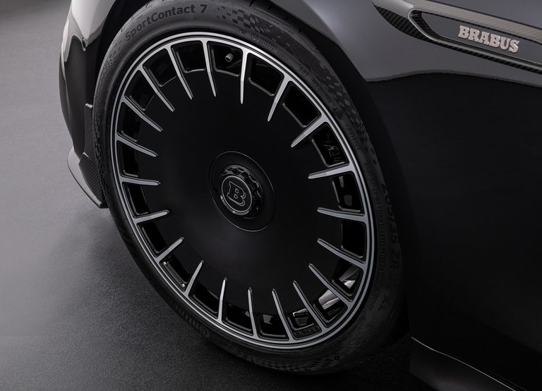 Basis für den neuen Brabus 930 ist der Mercedes-AMG S 63 E Performance. Er beschleunigt aus dem Stand in 3,2 Sekunden auf 100 km/h und ist elektronisch auf eine Höchstgeschwindigkeit von 290 km/h begrenzt. Zum ersten Mal werden auf diesem neuen Supercar die 22 Zoll großen Brabus Monoblock ZM „PLATINUM EDITION“ Räder eingesetzt. Der Veredler aus Bottrop bereift sie an der Vorderachse mit dem SportContact 7 in der Größe 265/35 ZR 22. Auf der Hinterachse kommt der Reifen in der Größe 295/30 ZR 22 zum Einsatz. Er passt damit zu dem neuen Style der Hightech-Felgen, die in einem aufwendigen Schmiede- und CNC-Bearbeitungsprozess entstehen. Sie zeichnen sich durch ihren konkav geformten Radstern sowie die Kombination von großflächigen, schwarz lackiertem Scheibendesign im Radzentrum und 20 filigrane Speichen mit polierter Oberfläche aus.