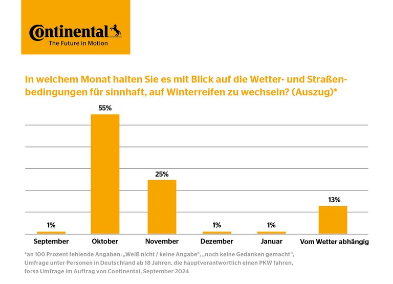 - Nur etwas mehr als die Hälfte der Autofahrer in Deutschland hält einen Wechsel von Sommer- auf Winterreifen im Oktober für sinnhaft