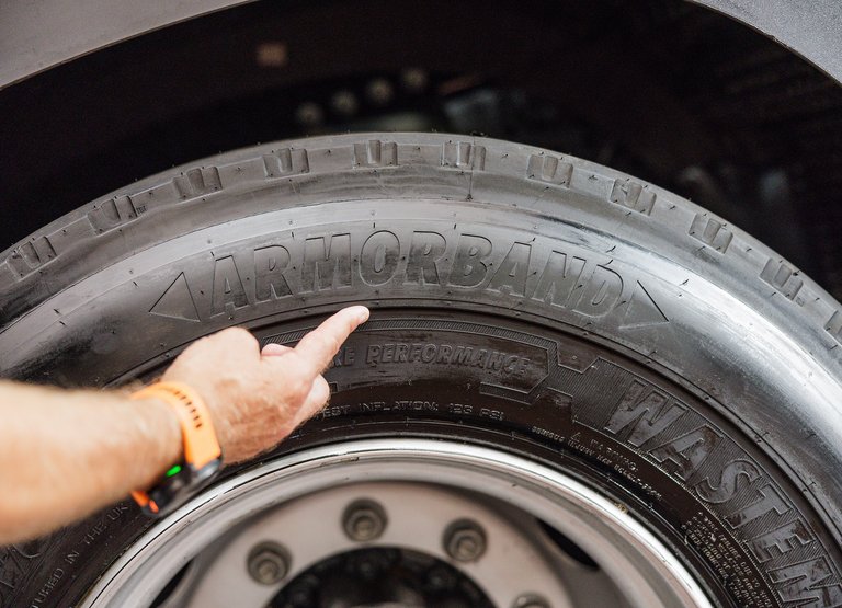 Der Wastemaster bleibt bei der Stadtreinigung Hamburg im Schnitt vier Jahre am Fahrzeug – trotz unzähliger scharfer Bordsteinkanten, Glassplitter und Kopfsteinpflasterkilometer. „Da ist der Wastemaster 5 ein deutlicher Vorteil für uns“, berichtet Technikchef Oliver Braune. „Es ist ein Topreifen. Mit dem Amorband an der Seite und der Seitenwandverstärkung ist er für uns aus dem Tagesgeschäft nicht mehr wegzudenken.“ Der Bandvulc Wastemaster 5 besitzt echte Nehmerqualitäten: Die robuste Seitenwandtechnologie mit einem soliden Schulterdesign schützt gegen Reifenschäden sowie vor Verschleiß durch Bordsteinkanten. „Das innovative Armorband an der Seitenwand ist eine sichtbare Stabilitätskontrolle“, ergänzt Peter Neumann, Key-Account-Manager bei der Vergölst GmbH in Hamburg. „Es zeigt an, wenn der Reifen gewechselt werden muss. So werden Reifenausfälle und Karkassenschäden wirksam verhindert.“ Zudem besitzt der Wastemaster 5 gute Steinauswurfeigenschaften und trägt das Three-Peak-Mountain-Snowflake-Symbol (3PMSF) – das Zeichen für zuverlässige Traktion, guten Grip und sicheres Handling insbesondere auch bei winterlichen Witterungsbedingungen.