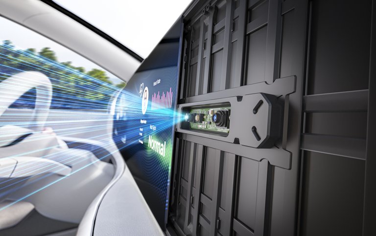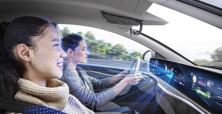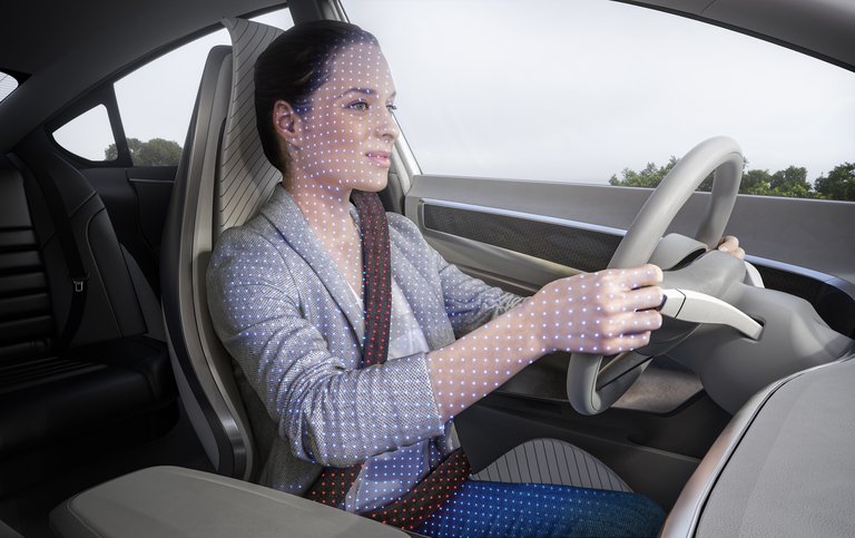 Um Vitaldaten zu erfassen ist neben einer 1,5-MP-Near Infrared-Kamera ein für das menschliche Auge ungefährlicher Laser Dot Projector hinter dem hochauflösenden OLED-Bildschirm platziert. Die hier eingesetzte biometrische Bildanalyse stammt vom Technologiepartner trinamiX. Das Verfahren nutzt die Reflexionen der vom Laser Dot Projector im unsichtbaren Lichtspektrum ausgesendeten Lichtpunkte, um auf Basis von künstlicher Intelligenz Ergebnisse abzuleiten. Zudem stellt die Lösung weitere relevante Informationen bereit: den Abstand von Fahrerin oder Fahrer zum Cockpit oder auch die Klassifikation von Textilstoffen, die zur Erkennung eines korrekt angelegten Sicherheitsgurtes benötigt wird.