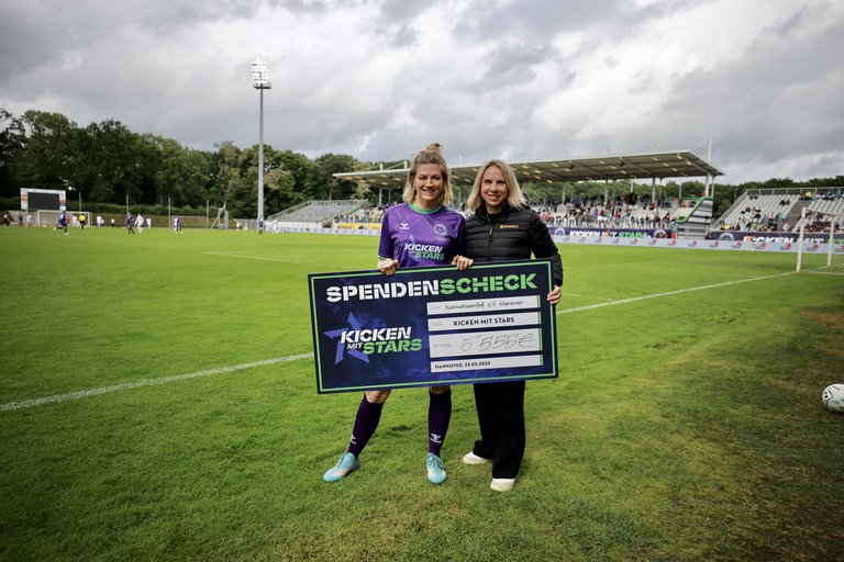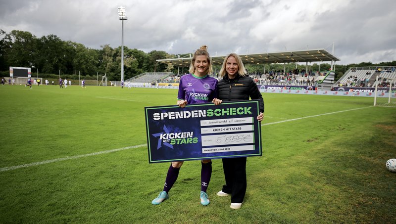 Hannover, 27. Mai 2025. Continental engagiert sich im Rahmen einer Kooperation mit dem Benefizprojekt „Kicken mit Stars“ und unterstützt so das soziale Engagement des Veranstalters mit einer Gesamtsumme von 5.000 Euro. Der Betrag wurde beim Charity-Fußballspiel, bei dem zahlreiche Prominente, Profisportler und Profisportlerinnen sowie ehemalige Fußballstars für den guten Zweck auf dem Platz stehen, mit einer Scheckübergabe symbolisch überreicht. Die Mittel kommen sozialen Einrichtungen wie dem Stadtteilbauernhof Hannover zugute.