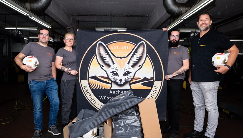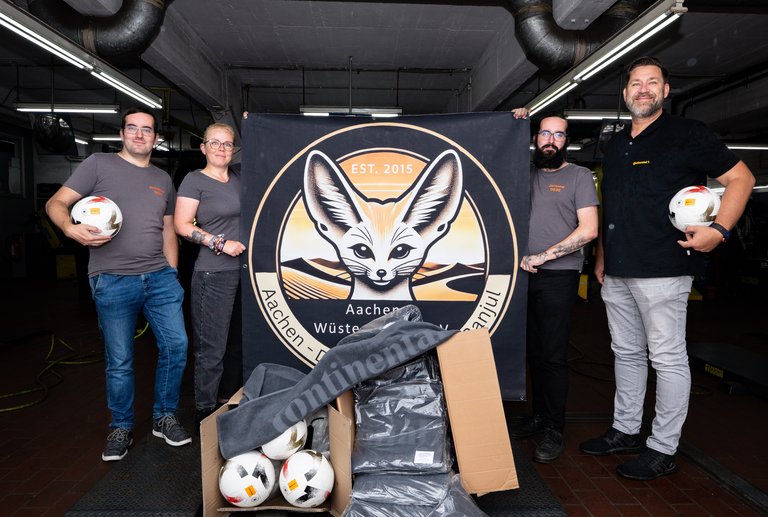 „Die Aachener Wüstenfüchse stehen für Abenteuerlust in Verbindung mit gesellschaftlicher Verantwortung – das unterstützen wir gerne“, sagt Frank Schnitker, Bezirksleiter Rheinland für Lkw- & Busreifen von Continental. „Es ist uns ein Anliegen, nicht nur Mobilität zu ermöglichen, sondern auch Menschen zu stärken, die mit Herz und Einsatz etwas bewegen.“ Dafür stellt Continental verschiedene Materialien zur Verfügung, die den Erlös des Teams ankurbeln und erstmals über die magische Marke von 100.000 Euro pushen sollen.