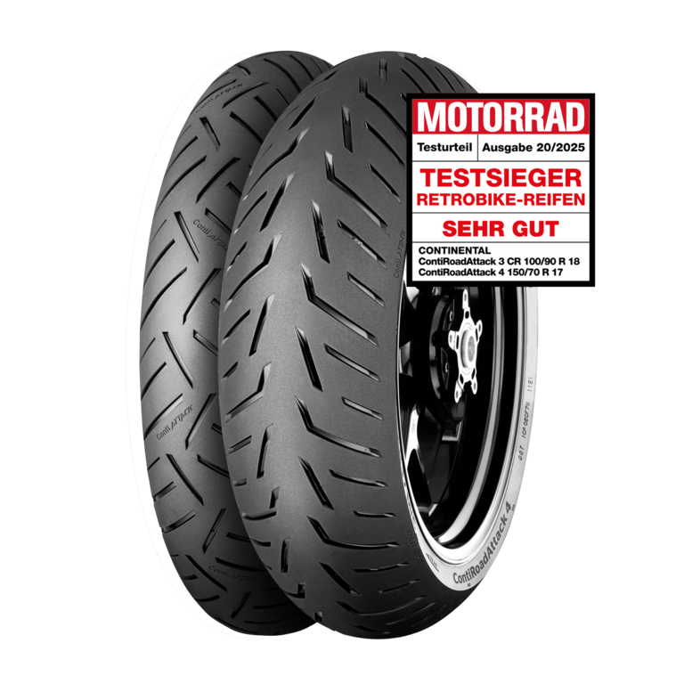 Das deutsche Magazin MOTORRAD, herausgegeben von der Motor Presse Stuttgart, führt seit Jahrzehnten Motorradreifen-Tests für diverse Segmente durch. „Der Testsieg bestätigt unsere konsequente Entwicklungsarbeit für klassische Motorräder und Retro-Bikes. Wir bieten maximale Sicherheit und präzises Handling ohne Kompromisse bei der Authentizität der Fahrzeuge", erklärt Sagren Nair. Der Testsieg ist bereits die zweite Auszeichnung, die Continental dieses Jahr nach dem “Kauftipp Verschleiß” der GS-Größen in der Ausgabe 06/2025 für ihren Hyper-Touring-Reifen ContiRoadAttack 4 erhalten hat.