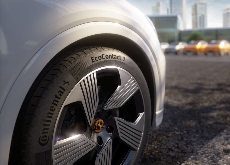 Continental hat früh – lange bevor Elektrofahrzeuge in der breiten Gesellschaft angekommen sind – damit begonnen, ihre Reifen auf immer geringeren Rollwiderstand, leise Abrollgeräusche und hohe Laufleistung zu optimieren. So stellte der Reifenhersteller bereits 1993 mit dem ContiEcoContact die erste, speziell auf Energieeffizienz ausgelegte Reifenlinie vor. Kürzlich wurde die siebte EcoContact-Generation vorgestellt. Für eine verbesserte Aerodynamik und damit eine erhöhte Energieeffizienz sorgt beim EcoContact 7 ein speziell optimiertes Design der Reifenwand. Hierbei haben die Entwicklerinnen und Entwickler von Continental verschiedene Technologien kombiniert. Ein Element ist die dem Golfsport entlehnte „Aerodimple“-Struktur. Die in die Seitenwand des Reifens eingelassenen Vertiefungen reduzieren die Luftverwirbelungen hinter dem Reifen. Das Fahrzeug muss so weniger Energie aufwenden, um den Reifen zu bewegen. Das macht ihn zu einer idealen Reifenlösung – sowohl für Verbrenner als auch für Stromer.