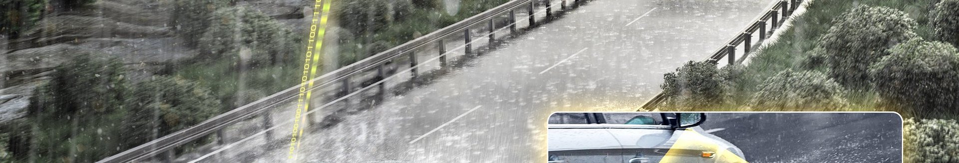 Aquaplaning kann jedoch auch unerwartet auftreten, sodass keine vorherige Warnung möglich ist. In diesem Fall lässt sich das potenzielle Risiko für andere Fahrzeuge auf der Straße durch eine frühe Kommunikation über V2X-Technologie (Vehicle to X) und eHorizon verringern. Es entsteht eine Art solidarisches Netzwerk, bei dem ein Fahrzeug als Sicherheitssensor für alle anderen und nicht nur für diejenigen in unmittelbarer Nähe fungiert. Per V2X oder eHorizon können diese Informationen potenziell von Aquaplaning betroffenen Fahrzeugen zur Verfügung gestellt werden, damit diese ihre Fahrfunktionen an die Bedingungen anpassen können.