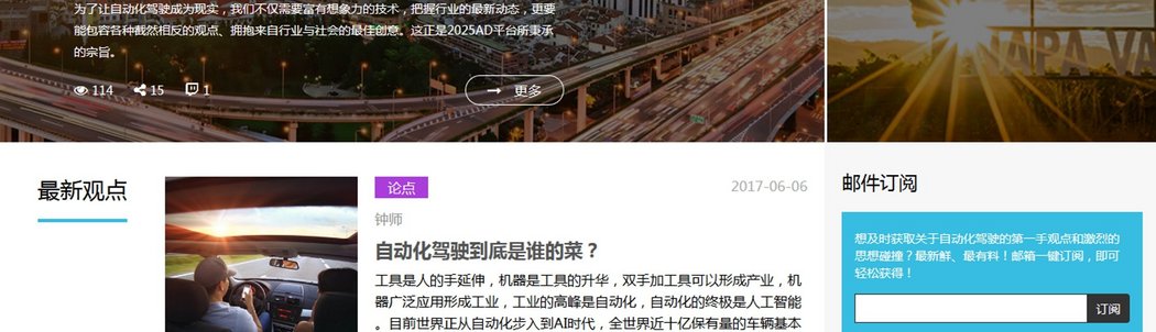 2025AD.cn informiert über alle gesellschaftlichen, geschäftlichen, technologischen und juristischen Aspekte rund ums automatisierte Fahren, die für Nutzer aus China relevant sind. Die Seite bietet eine transparente Umgebung, in der Anwender ihre Meinung zum automatisierten Fahren äußern und an konstruktiven Diskussionen zu Themen teilnehmen können, die sie interessieren. Die Plattform ist auch über WeChat, Weibo, QQ Zone und weitere wichtige in China genutzte Social-Media-Plattformen erreichbar.