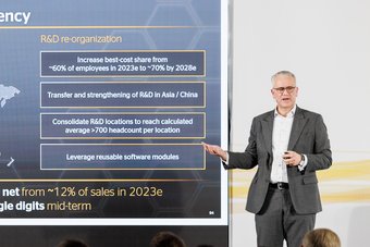 Unabhängig davon setzt Automotive auf eine deutliche Kostenreduktion von jährlich 400 Millionen Euro ab 2025. Dazu werden unter anderem Verwaltungsstrukturen, Schnittstellen, Hierarchielevel und Komplexität reduziert sowie Entscheidungsstrukturen und Prozesse vereinfacht. Darüber hinaus plant Automotive, seine Quote für Forschung und Entwicklung zu reduzieren. So strebt der Unternehmensbereich kurzfristig an, die Forschungs- und Entwicklungskosten (netto) auf rund 11 Prozent vom Umsatz (erwartet 2023: rund 12 Prozent) zu senken. Mittelfristig soll die Quote weniger als 10 Prozent betragen. Dazu beitragen soll unter anderem eine verstärkte Bündelung der weltweit 82 Entwicklungsstandorte.