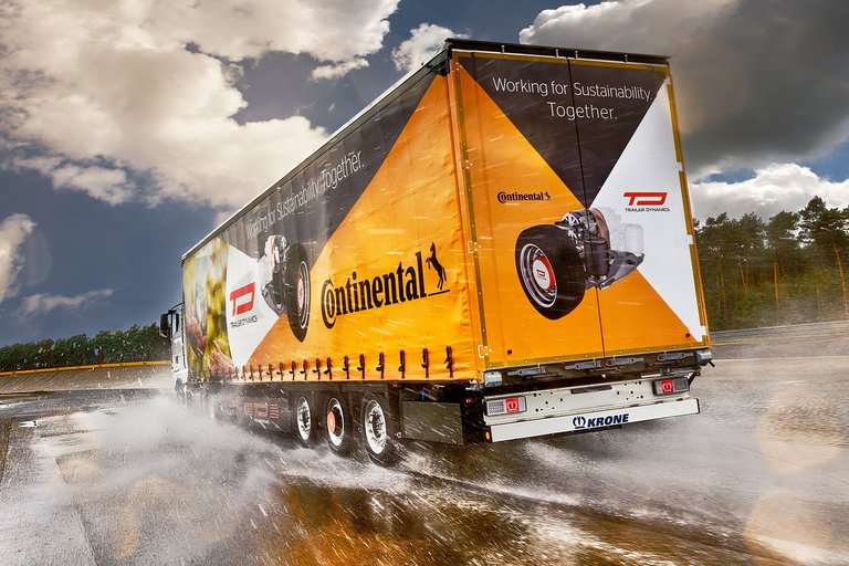 Der Prototyp auf Basis eines Conti EcoPlus HT3 + in der Dimension 355/50 R 22.5 verfügt bereits über eine Straßenzulassung und wird derzeit gemeinsam mit Trailer Dynamics erprobt. Die Serienproduktion soll planmäßig 2025 beginnen. Dank der elektrifizierten Antriebsachse des eMega Liner von Trailer Dynamics wird die aus einer Sattelzugmaschine mit Verbrennungsmotor im Handumdrehen ein Hybrid. Der elektrische Anhänger ermöglicht somit eine erhebliche Reduzierung des Dieselverbrauchs und der CO2-Emissionen – nach Angaben des Herstellers um mindestens 20 Prozent.