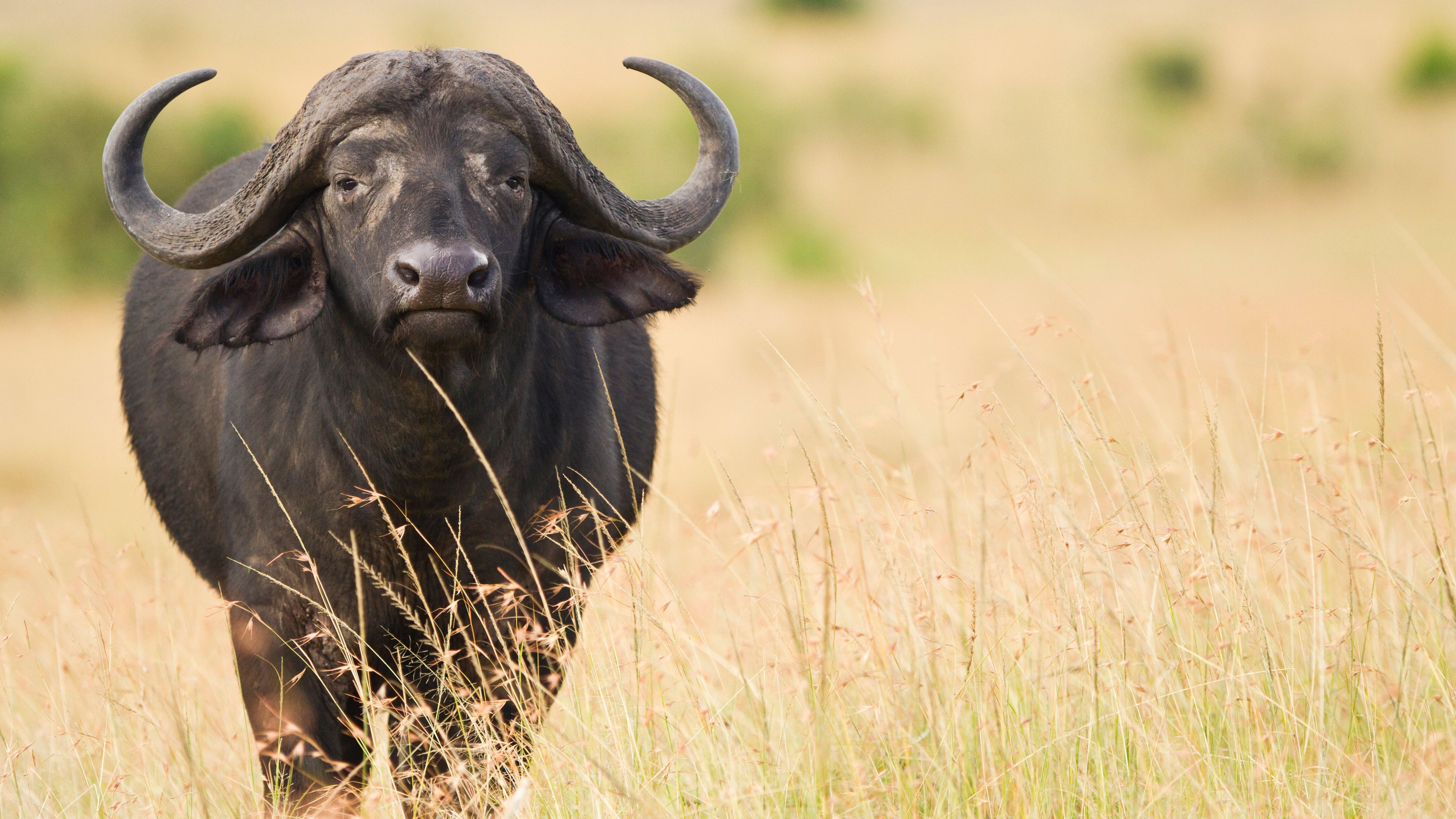 Heute begeben wir uns Richtung Norden, in eine Gegend mit großen Grasflächen. „Hier sollten wir gute Chancen haben, eine Büffelherde zu sehen“, sagt der Ranger – und er soll recht behalten. Wenige Minuten später bewegen sich hunderte Büffel durch die Ebene. Ihre markanten abwärts geschwungenen Hörner ziehen unsere Blicke auf sich. Die meisten Tiere grasen, manche starren aus sicherer Entfernung den Jeep an.