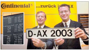 2003 begann dann aber eine Entwicklung, die die Continental-Aktie in neue Höhen katapultierte, bevor sie 2009 infolge der weltweiten Wirtschafts- und Finanzkrise erneut einen kurzzeitigen Einbruch verzeichnete. Erst jetzt begannen in den Augen des Continental-Vorstands die Kapitalmärkte die neue Ausrichtung des Konzerns zu honorieren. Nach siebenjähriger Unterbrechung kehrte das Unternehmen damit wieder in den Kreis der TOP-30-Aktienwerte in Deutschland zurück. Die Rückkehr in die Börsenoberliga brachte der Aktie auch wieder eine gesteigerte Aufmerksamkeit auf internationalen Finanzmärkten und bei weltweiten Investoren ein.