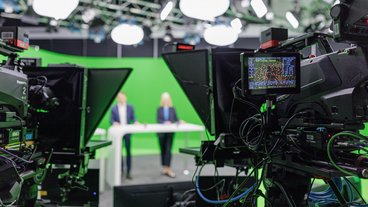 In unserem professionellen virtuellen Studio produzieren wir regelmäßig diverse Video-Formate im Rahmen unserer Unternehmenskommunikation. Dank einer Fläche von rund 260qm sowie der Deckenhöhe von 7 Metern bietet das TV-Studio höchst professionelle Produktionsbedingungen. So können hier umfangreiche Video-Formate wie Webcasts, virtuelle Pressekonferenzen, Statements und auch virtuelle Hauptversammlungen aufgezeichnet werden.