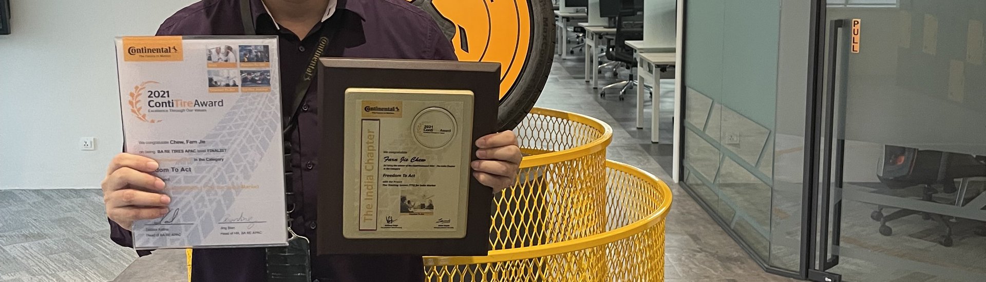 With different projects and project teams I have been nominated for various internal awards since I joined the company. It feels just great already when receiving the message that someone nominated the project team and recognized the efforts put into it. For our ContiTireAward for example each year hundreds of projects are nominated from all over the world. If you then receive a message that you are among the finalists you are head over heels in pride!